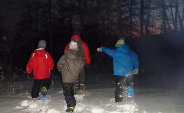 その日の天候によって、過ごし方はいろいろですが時には雪で遊んだり、雪の上に寝転がって星空を眺めたり、月明かりに映し出される木々の影を眺めたり色々と楽しむことができます。