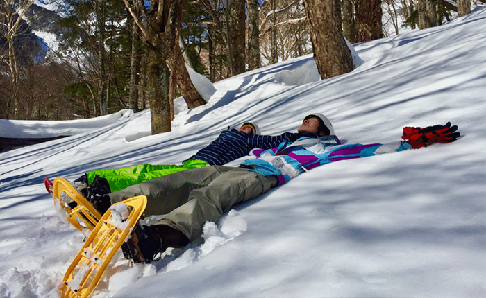 川沿いの平坦な雪の森をお散歩しながら、雪の奥鬼怒を満喫します。