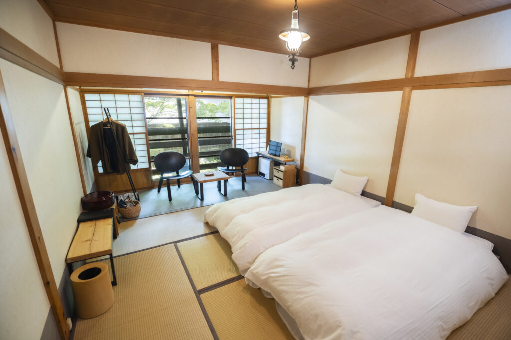 創業当時からある本館和室のお部屋の設えを布団タイプからローベッドタイプに、そして、装飾品の設えもリニューアルいたしました。